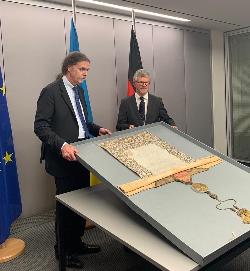 Министр по науке, исследованиям и искусству федеральной земли Баден-Вюртемберг Терезия Бауэр по согласованию с внешнеполитическим ведомством ФРГ и Тюбингенским университетом приняла решение передать документ Украине. Об обстоятельствах попадания в библиотеку известно лишь, что его приобрел для университета в конце 1950-х годов профессор Вернер Маркерт, основатель и первый директор Института по изучению истории Восточной Европы и страноведения.