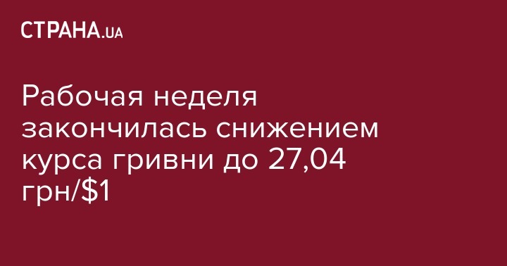 Рабочая неделя закончилась снижением курса гривни до 27,04 грн/$1