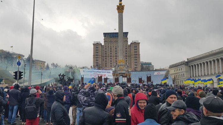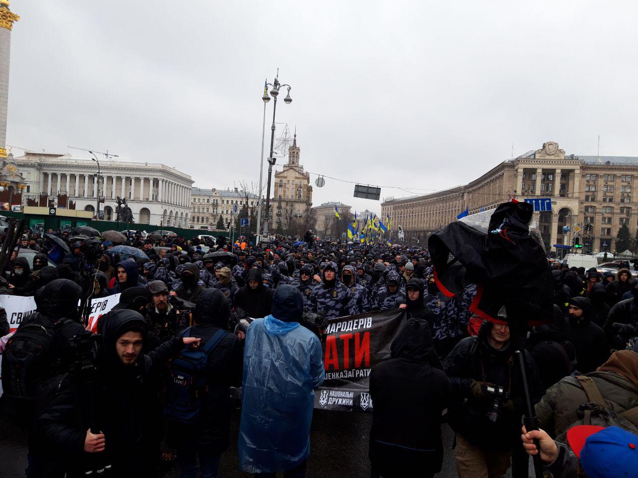 12:43 В центре Киева собралось более десяти тысяч человек - по большей части в камуфляжной форме "Нацкорпуса" и возраста 17-23 года. Все пришли с требованием расследования скандала в Укроборонпроме. Скандируют уже известный лозунг "Де вiдрубанi руки?" И "за грати".