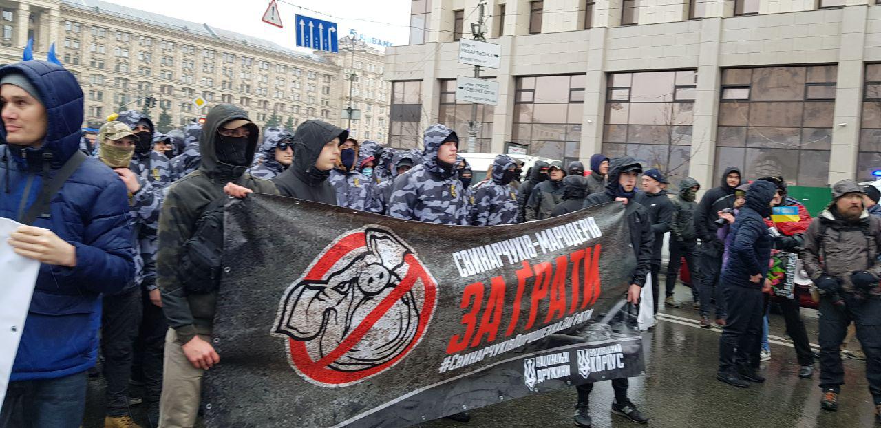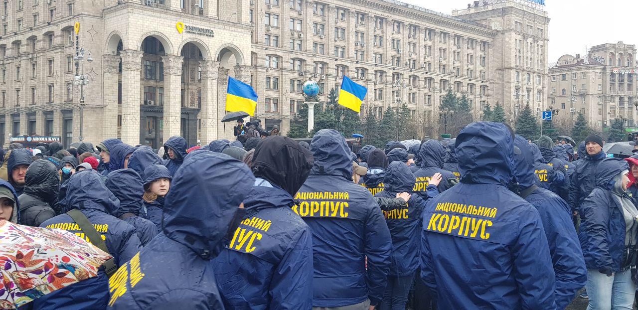 Сегодня в Киеве прошел митинг Нацкорпуса, который начался на Майдане и дошел до Администрации президента.