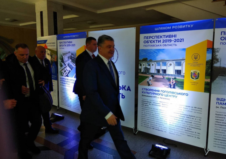 Порошенко присутствовал на заседании Совета регионального развития по рассмотрению вопроса об утверждении Плана перспективного развития Полтавщины на период 2019-2021 годов. Заседание проходило около 12:00.