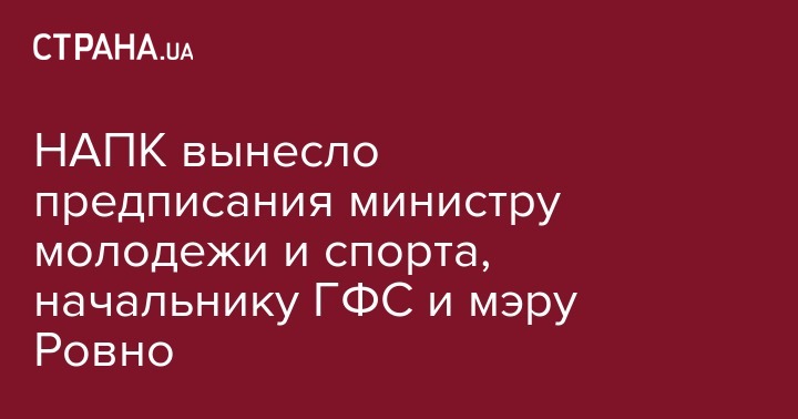 НАПК вынесло предписания министру молодежи и спорта, начальнику ГФС и мэру Ровно