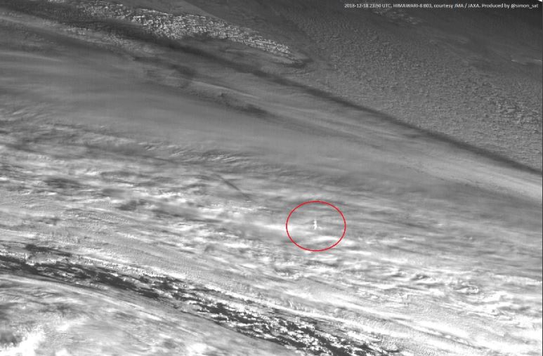 При этом японский спутник "Химавари" зафиксировал почти вертикальный столб дыма от болида - он вошел в атмосферу очень резко. Также можно увидеть длинную тень этого столба.