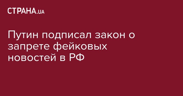 Президент России Владимир Путин подписал законы о блокировании "фейковых новостей" и наказании за них. Об этом сообщает ТАСС.