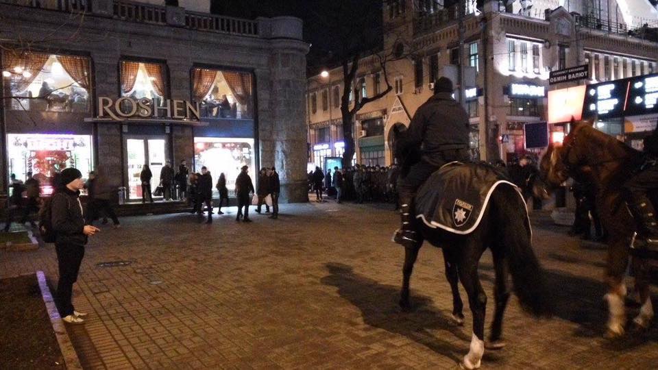 Однако киевский магазин "Рошен" на Крещатике еще долго охраняли - даже выводили к нему конную полицию