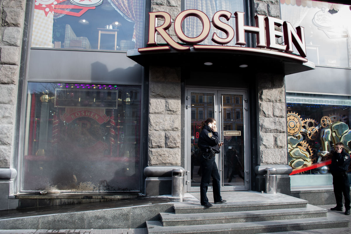 На следующий день - 18 марта - запылал магазин президента уже в самом центре столицы. На Крещатике, недалеко от Бессарабской площади, в витрину "Рошен" бросили взрывпакет.