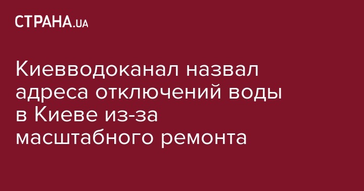 Киевводоканал назвал адреса отключений воды в Киеве из-за масштабного ремонта