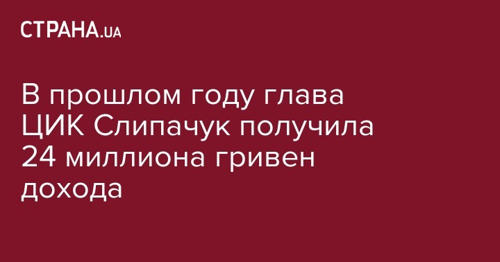 Доходы председателя Центральной избирательной комиссии (ЦИК) Татьяны Слипачук в 2018 году составили 23,9 млн гривен. Об этом со ссылкой на данные ее декларации пишут "Украинские Новости"