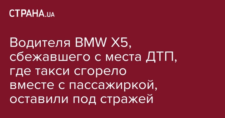 В сообщении говорится, что водитель автомобиля BMW Х5, выехал за пределы проезжей части, протаранил забор, после чего въехал в Daewoo Lanos, пассажирка которого в результате столкновения сгорела в салоне авто. Поскольку это был автомобиль такси, личность погибшей женщины удалось установить только по результатам экспертизы ДНК. Ею оказалась жительница города Киева, 1990 г.р. Водитель BMW X5 с места аварии скрылся, однако вскоре был задержан.