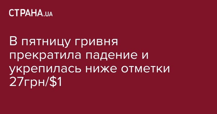 В пятницу, 22 марта, курс украинской национальной валюты на межбанковском валютном рынке в пятницу укрепился до 26,895 грн/$1 с 27,099 грн/$1 в предыдущий рабочий день. Об этом сообщили дилеры коммерческих банков, передает "Интерфакс-Украина".