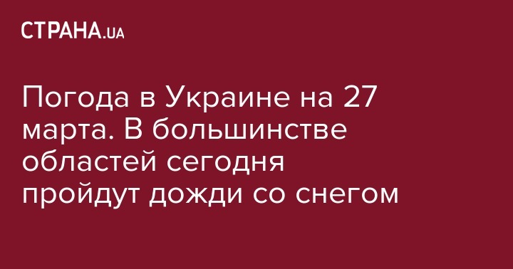 В среду, 27 марта, во многих регионах Украины пройдут дожди со снегом. Об этом свидетельствует прогноз, размещенный на сайте Укргидрометцентра.