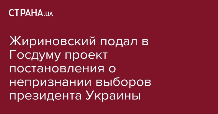Лидер Либерально-демократической партии РФ Владимир Жириновский подал в Государственную думу России проект постановления о непризнании итогов выборов президента Украины. Документ опубликован на сайте Госдумы.