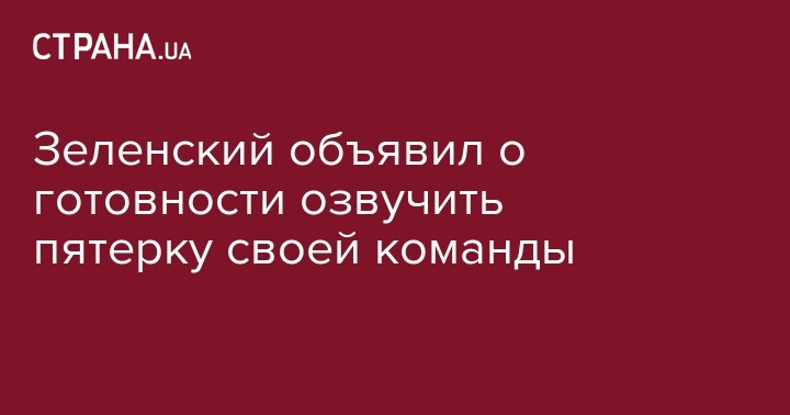 Зеленский объявил о готовности озвучить пятерку своей команды