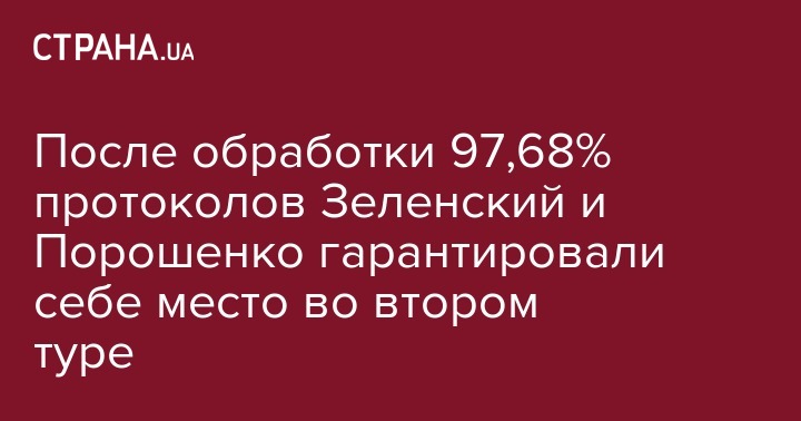 После обработки 97,68% протоколов Зеленский и Порошенко гарантировали себе место во втором туре