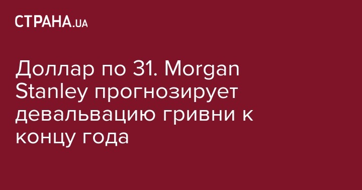 До конца 2019 года курс гривны снизится по отношению к доллару на 4 грн - до 31 гривны за доллар. Такой прогноз дают аналитики инвестбанка Morgan Stanley. Об этом сообщает НВ Бизнес, ссылаясь на отчет Morgan Stanley.