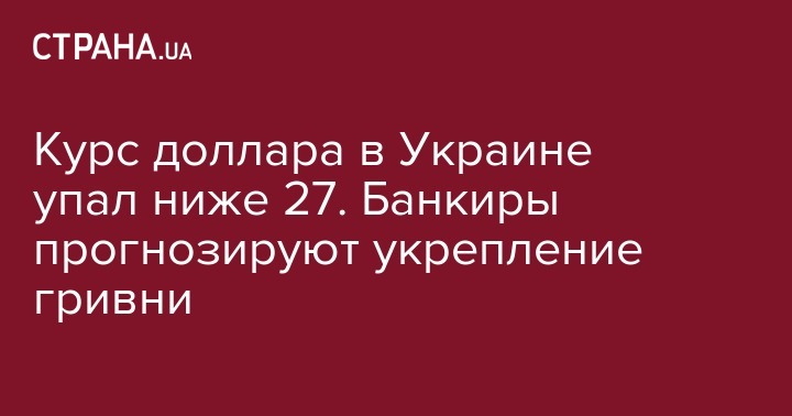 Курс доллара в Украине упал ниже 27. Банкиры прогнозируют укрепление гривни