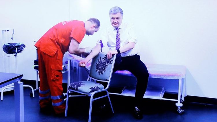 09:33 Петр Порошенко сдал анализ крови. Ушел сдавать другие анализы в тайную комнату, в этот раз без трансляции на экране.