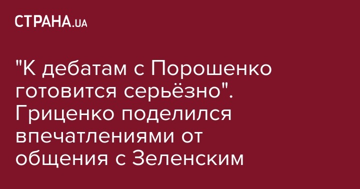 "К дебатам с Порошенко готовится серьёзно". Гриценко поделился впечатлениями от общения с Зеленским