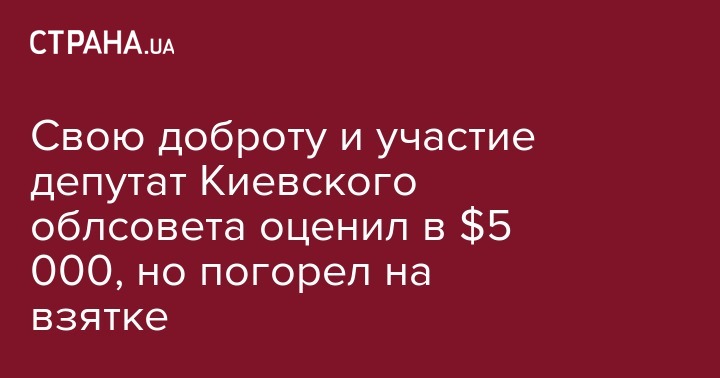 Полиция и детективы Госбюро расследований (ГБР) задержали депутата Киевского областного совета, который требовал $5 тысяч у гражданина за содействие в возврате арестованного имущества.
