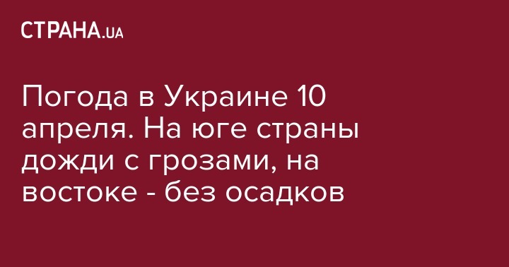 В среду, 10 апреля, в Украине будет дождливо, солнце выйдет только в восточных и нескольких западных областях. Об этом свидетельствует прогноз, размещенный на сайте "Укргидрометцентра".