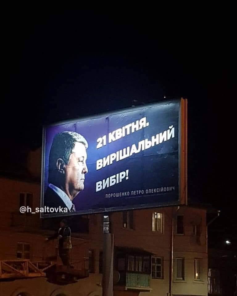 С рекламных плакатов Петра Порошенко, которые призывают украинцев сделать решающий выбор 21 апреля, исчезло изображение президента России Владимира Путина.