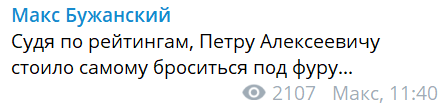 "Судя по рейтингам, Петру Алексеевичу стоило самому броситься под фуру", - иронизирует блогер Макс Бужанский.