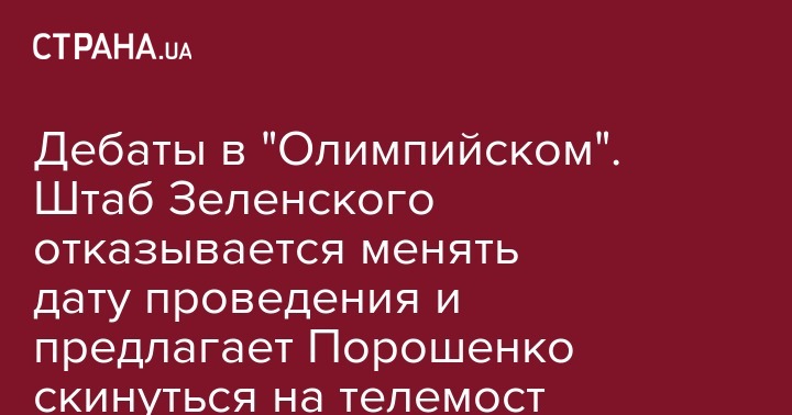 Дебаты в "Олимпийском". Штаб Зеленского отказывается менять дату проведения и предлагает Порошенко скинуться на телемост
