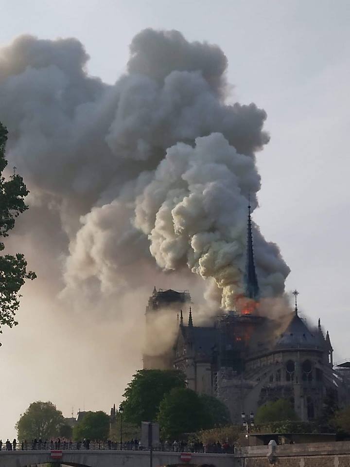 Спустя примерно час шпиль собора обрушился. К месту происшествия съехались машины экстренных служб. Вокруг горящего здания полиция выстроила защитный кордон до моста Сен-Мишель.
