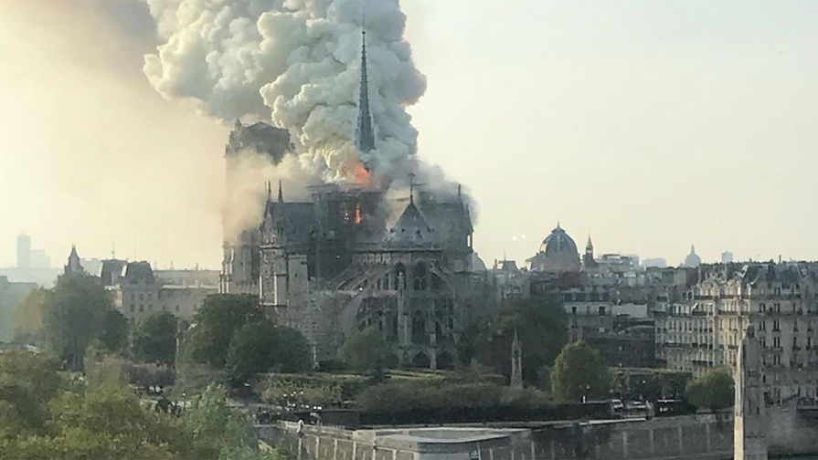 Во время пожара в Соборе Парижской богоматери (Нотр-Дам-де-Пари) обрушился шпиль.