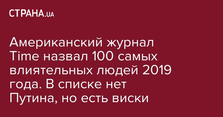 В среду, 17 апреля, американский журнал Time в среду опубликовал список 100 самых влиятельных людей за 2019 год. В перечне знаменитостей есть Дональд Трамп, актер Дуэйн Джонсон, певица Тейлор Свифт, актриса Сандра О и футболист Мохаммед Салах. В рейтинге второй год подряд нет президента РФ, несмотря на то, что в апреле 2018 года Владимир Путин попал на обложку Time в царской короне. Представителей Украины также нет в списке.