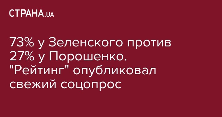 Отметим, что позавчера, 16 апреля, был опубликован рейтинг КМИС. Его цифры практически совпадают с сегодняшними данными - 72,2% у Зеленского против 25,4% у Порошенко. То есть данные опросов разнятся в пределах статистической погрешности.