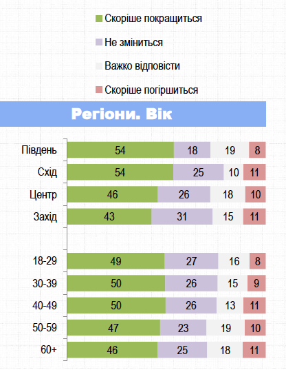 Среди тех, кто верит в оптимистичный сценарий после выборов, больше жителей юга и востока Украины, молодых опрошенных и избирателей Зеленского.