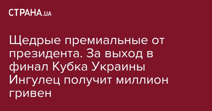 Вчера, 17 апреля, в полуфинале Кубка Украины грянула самая настоящая сенсация. Скромный Ингулец одолел луганскую Зарю и впервые в своей истории вышел в финал, где сыграет с Шахтером. За такое достижение руководство клуба выделило команде щедрые премиальные. Игроки получат миллион гривен.