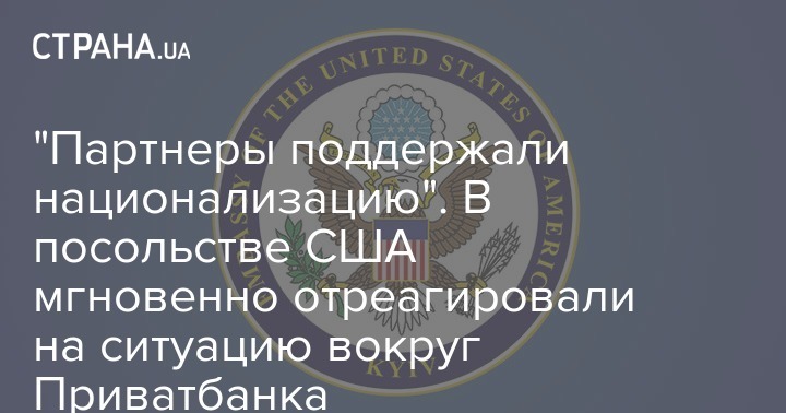 "Партнеры поддержали национализацию". В посольстве США мгновенно отреагировали на ситуацию вокруг Приватбанка