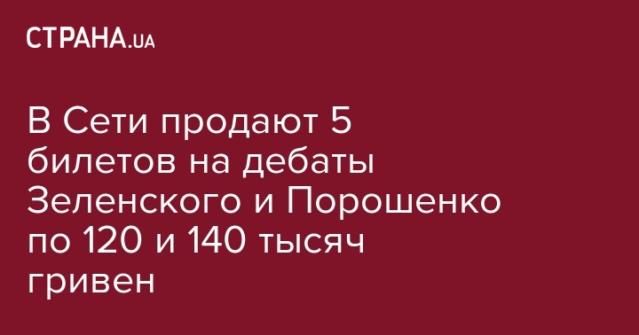 В Сети продают 5 билетов на дебаты Зеленского и Порошенко по 120 и 140 тысяч гривен