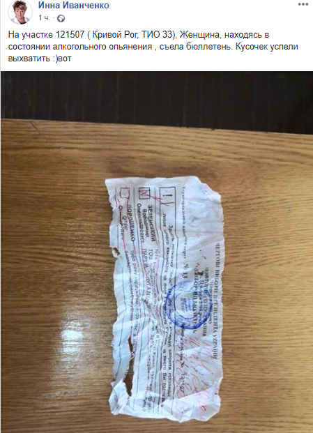 Люди закрашивали бюллетени или же писали свои мысли. Кое-кто дорисовывал графу "против всех" и ставил там галочку, а на других размашисто писали "Идите к черту". А на избирательном участке № 800635 в Подольском районе Киева один из бюллетеней был испачкан коричневым веществом.