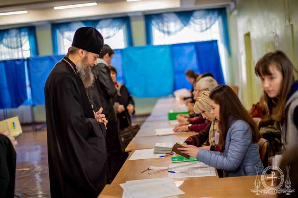 9:49 Управляющий делами УПЦ митрополит Антоний сходил на избирательный участок.