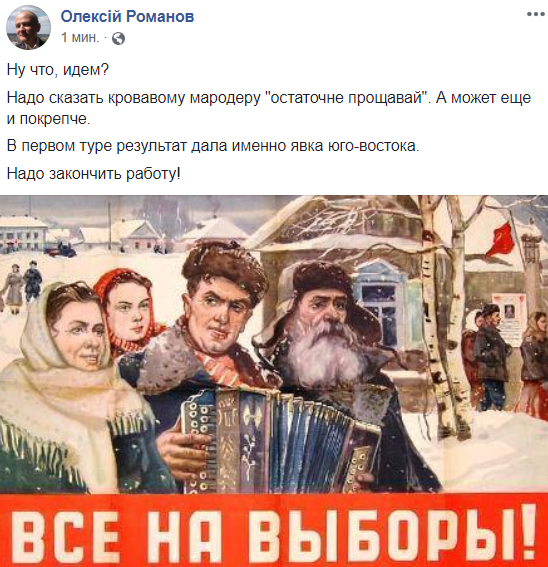 Вчера вечером он опубликовал пост, где, как и президент, призвал приходить на участок в вышиванке. И добавил тот же хештег, что использовал Порошенко - #голосуюзаУкраїну.