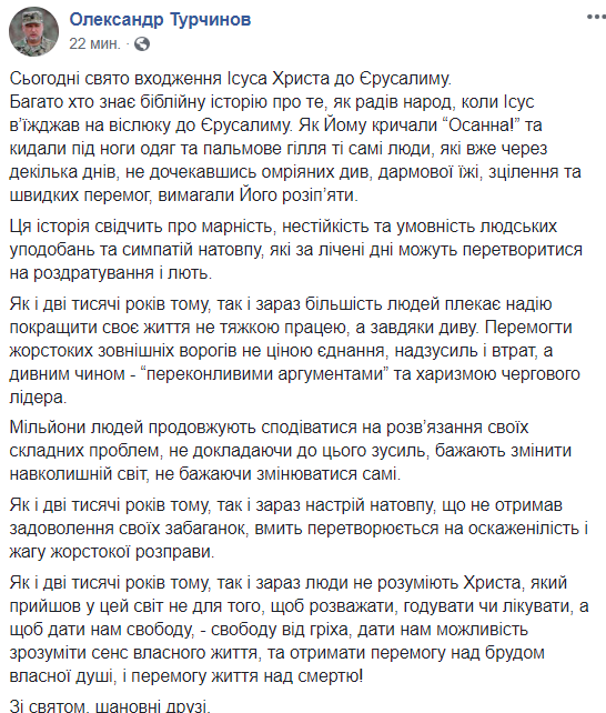 Такое сравнение следует из поста Турчинова о Вербном воскресении.