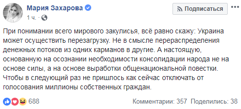 В то же время шансы на улучшение взаимодействия с нашей страной все же есть. Что нужно для этого? Честность. И еще нужен прагматичный и ответственный подход. Подход, учитывающий все сложившиеся в Украине политические реалии. Включая прежде всего ситуацию на востоке страны.