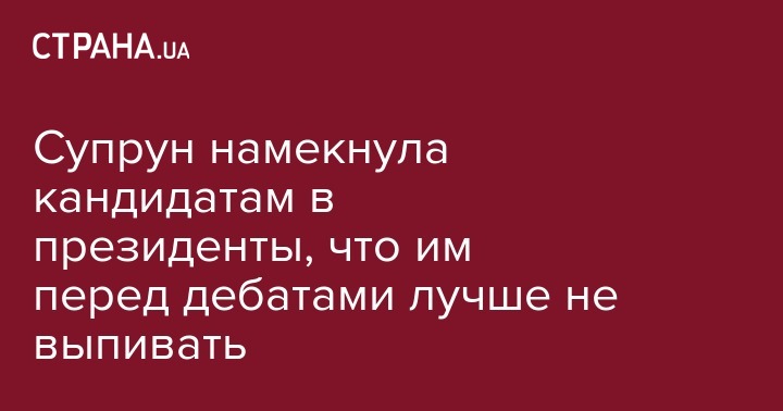 В преддверии дебатов кандидатов в президенты Украины на НСК "Олимпийский" глава Минздрава Уляна Супрун поделилась общими советами, как выступать перед большой аудиторией. Об этом говорится на ее Facebook-странице.