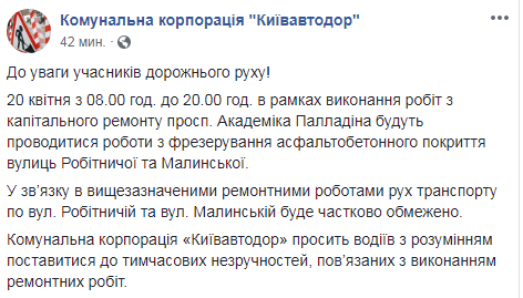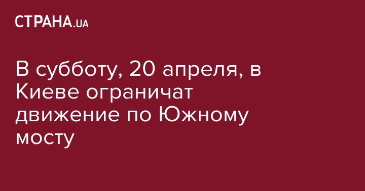 В субботу, 20 апреля, с 10.00 до 20.00 в Киеве будет ограничено движение транспорта по Южному мосту. Это связано с проведением ремонтных работ асфальтобетонного покрытия на путепроводе, передает пресс-служба коммунальной корпорации "Киевавтодор".