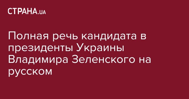 Согласно результатам жеребьевки, первым выступал Владимир Зеленский. "Страна" публикует полную речь кандидата в президенты Украины Владимира Зеленского на русском: