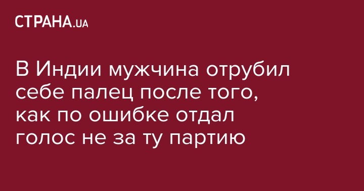 Индийский избиратель Паван Кумар отрубил себе указательный палец из-за того, что проголосовал за неправильную политическую партию. Он проголосовал в четверг в Буландшахре в северном штате Уттар-Прадеш. Это был второй этап голосования на всеобщих выборах в Индии.