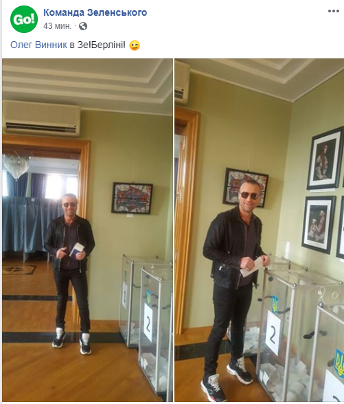Популярный украинский исполнитель Олег Винник проголосовал на участке в Берлине. Его фото обнародовала команде Зе в Facebook.