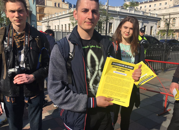 Сегодня, 25 апреля, возле Верховной Рады проходит акция в поддержку принятия закона об украинском языке, который сегодня рассматривают нардепы.