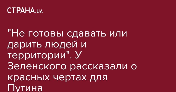 "Не готовы сдавать или дарить людей и территории". У Зеленского рассказали о красных чертах для Путина