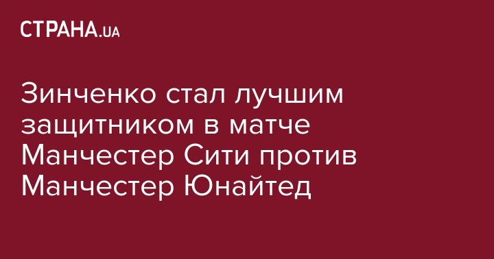 Зинченко стал лучшим защитником в матче Манчестер Сити против Манчестер Юнайтед