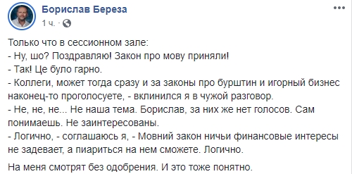 Блогер Денис Гороховский: "Проголосовали "мовний закон". Вот даже как-то событие никаких эмоций не вызывает.