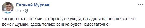 Депутат Евгений Мураев: "Что делать с гостями, которые уже уходя, нагадили на пороге вашего дома? Думаю, здесь только веника будет недостаточно".